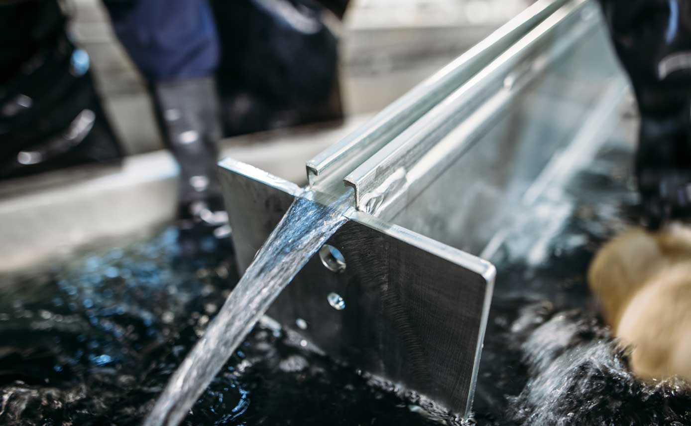 Weitere Beiträge zu umwelt­schonendem Arbeiten sind eine ausgereifte Spültechnik mit taktenden Mehrfachspülungen und geringerem Wasserverbrauch sowie die Überwachung unserer Technologie mit Röntgen­fluoreszenz­technik.